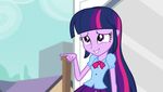 Pour ce qui est de la Twilight humaine, elle ressemble beaucoup au niveau de sa personnalité à celle de la série animée à ses débuts : une personne très intelligente et studieuse, mais aussi très renfermée et introvertie. Cependant au contact de nos héroïnes elle sort peu à peu de sa coquille. Elle est aussi très affectée et blessée par les railleries et les moqueries de ses camarades de Crystal Prep, cependant, la gentillesse de Fluttershy et la bienveillance de Applejack lui permettront de se ressaisir reprendre confiance en elle.
