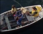 Le lendemain de cette petite excursion, Tom fête son anniversaire et pour clore le petit événement après un bon déjeuner et l'ouverture des cadeaux dont une lampe de poche de la part de tante Edna et une ligne de fond offerte par Eli (il lui a donné le paquet après la balade en mer), les enfants obtiennent la permission de leur tante de partir seuls à la pêche à bord du dinghy, canot à moteur qu'ils ont appris à manœuvrer, en promettant toutefois de rester en vue du rivage. Dernières recommandations d'Eli qui ne peut les accompagner à cause de son travail et les salue lors de leur départ au port : mettre les gilets de sauvetage et ne pas trop s'éloigner de la côte.